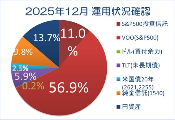2025年12月も終わりしばらく経ちましたが、遅ればせながら12月末時点の資産状況と12月の投資状況を確認してゆきます。